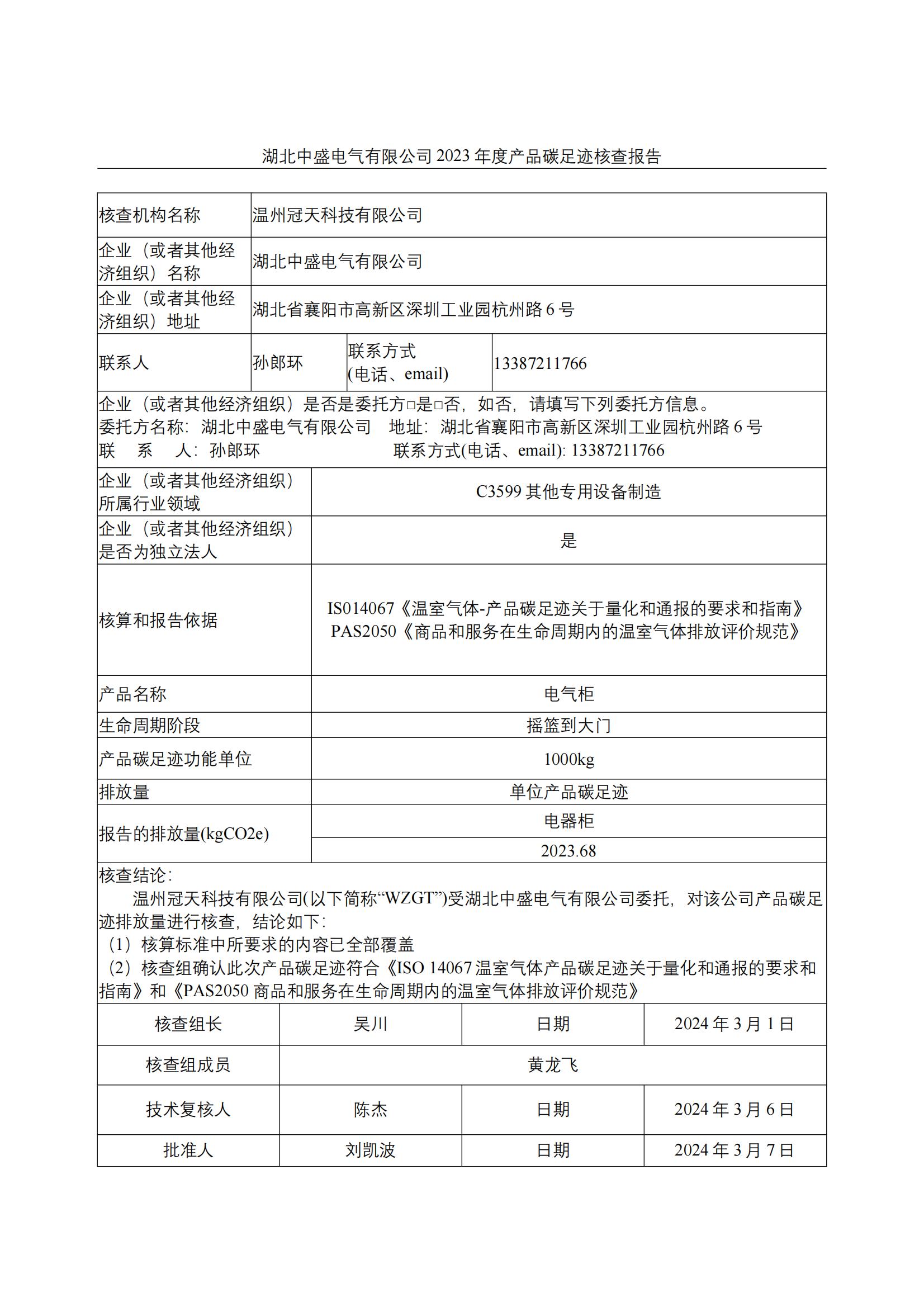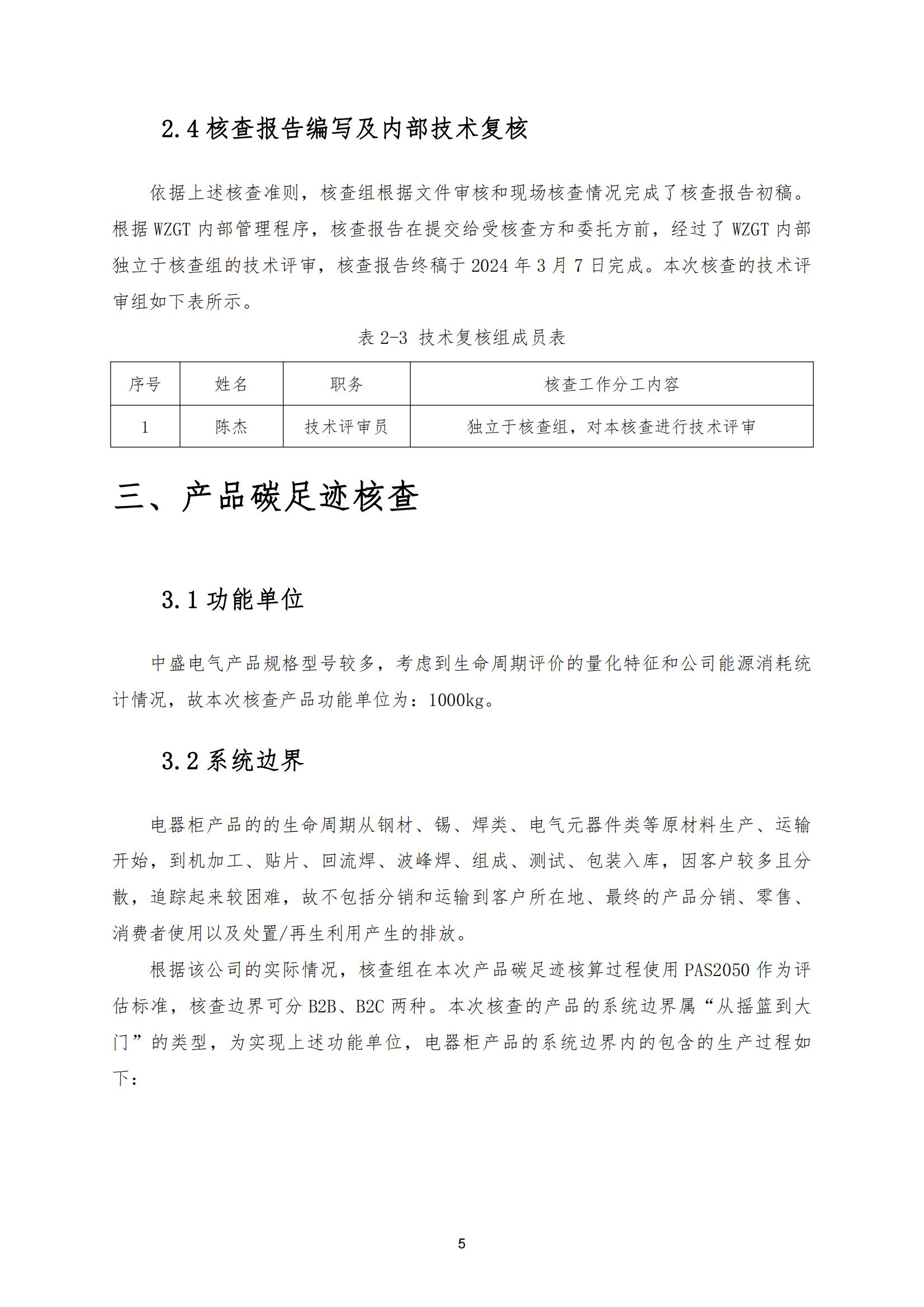 (公示)中盛電氣溫室氣體核查報告